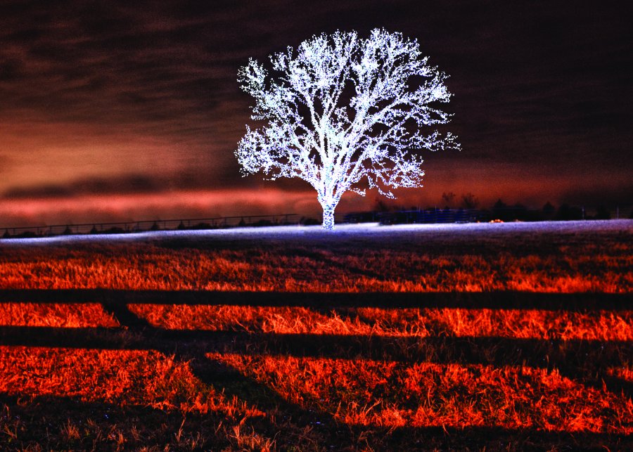 The Bartonville Tree (affectionately known as the "OMG Tree") is a beloved local landmark that has grown from a private family tribute into a regional holiday tradition. Located on Barbara Nunneley’s ranch off McMakin Road, this massive 150-year-old pecan tree is meticulously wrapped in over 60,000 to 65,000 LED lights each winter. The tradition began in 2007 as a tribute to Nunneley’s terminally ill father, who cherished the Christmas season. Since then, the tree has become a symbol of hope and community, lit every year on Thanksgiving evening through early January.